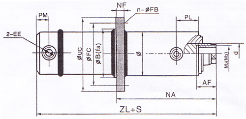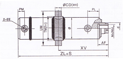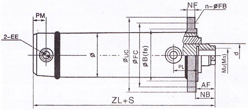 1.活塞杆端为内螺纹连接: 1.)尾部单耳环连接 2.) 3.)中间轴销连接 4.)前端法兰连接 5.)中部法兰连接