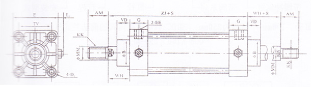 注:技术参数及安装形式外形尺寸参照双作用普通气缸系列